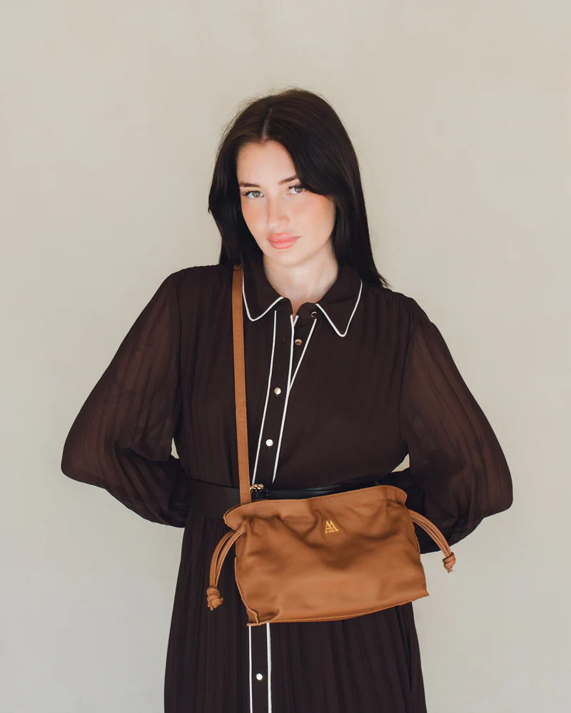 Fiona es la versión mini del bolso Fátima, su hermana pequeña. Con el encanto del detalle plisado en piel vacuna de alta calidad certificada por Leather Working Group (LWG), es ligero, versátil y perfecto para llevar lo indispensable sin renunciar al estilo.